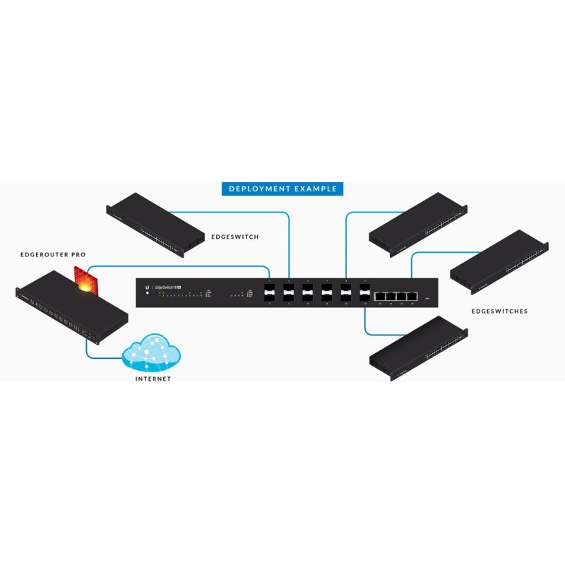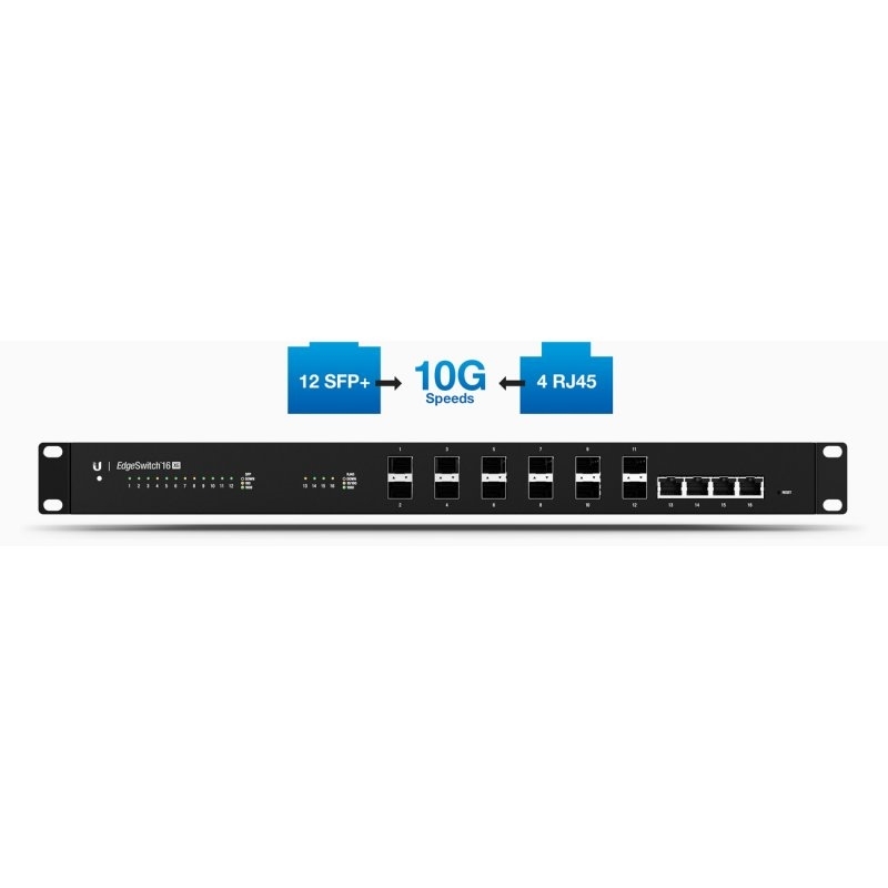 \»El EdgeSwitch está dotado con 12 puertos SFP+ y cuatro puertos RJ45 10G-Base-T para entregar y agregar datos de manera eficiente a velocidades de 10G.